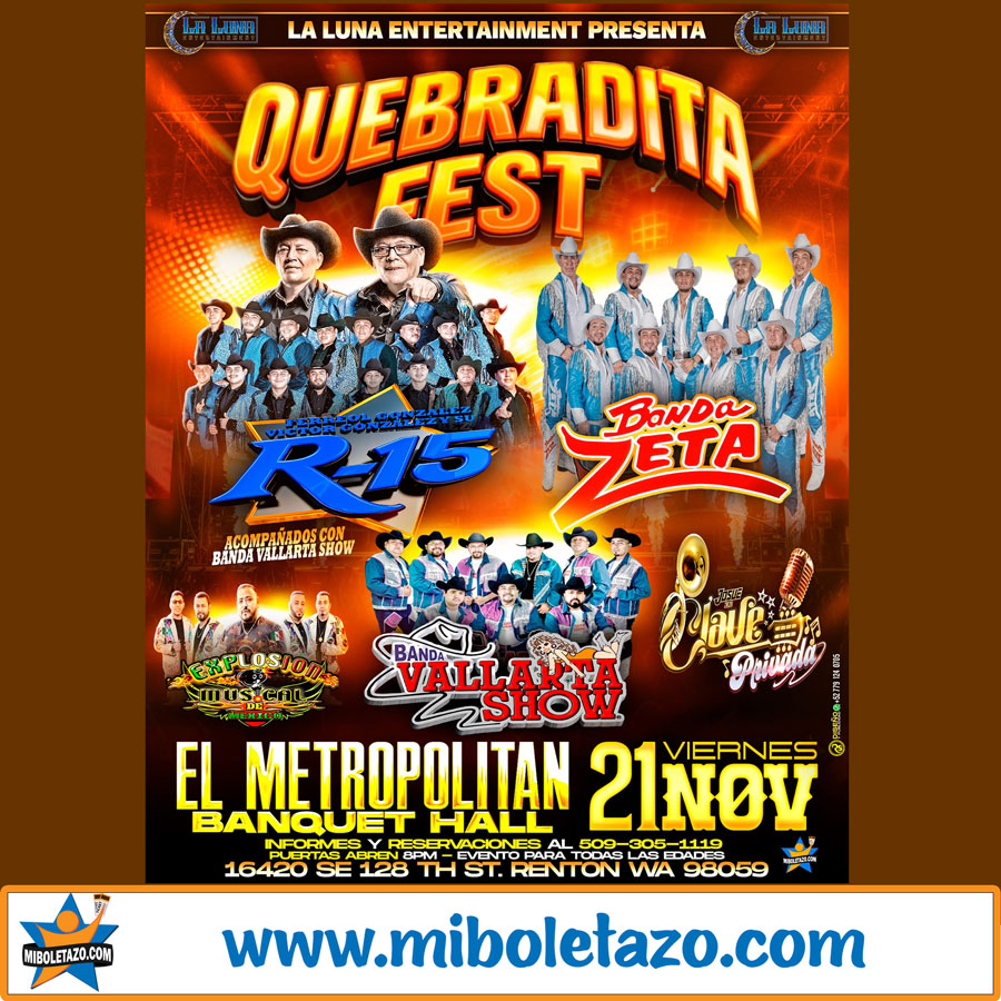 QUEBRADITA FEST BANDA ZETA - BANDA R-15 - BANDA VALLARTA SHOW EN EL METROPOLITAN WA